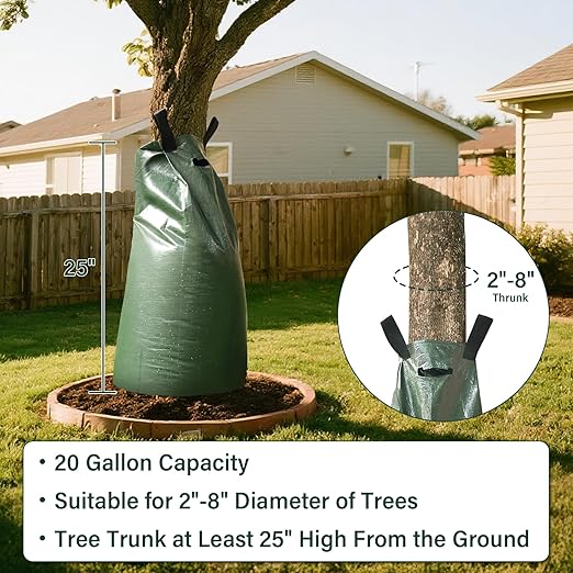 - 20 Gallon Capacity: Our tree gator watering bag can hold up to 20 gallon of water, about 5-8 hours release time, so the large capacity can effectively avoid frequent manual watering and maximize your time and effort. Single tree irrigation bag fits for 2" - 8β diameter trunk, at Least 25" high from the ground