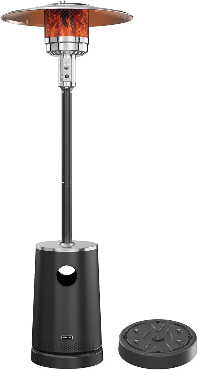 EAST OAK 55,000 BTU Patio Heater with Sand Box, Table Design, Thicker Stainless Steel Burner, Wheels, Triple Protection System, Propane Outdoor Heater for Home and Residential, Commercial Grade, Black