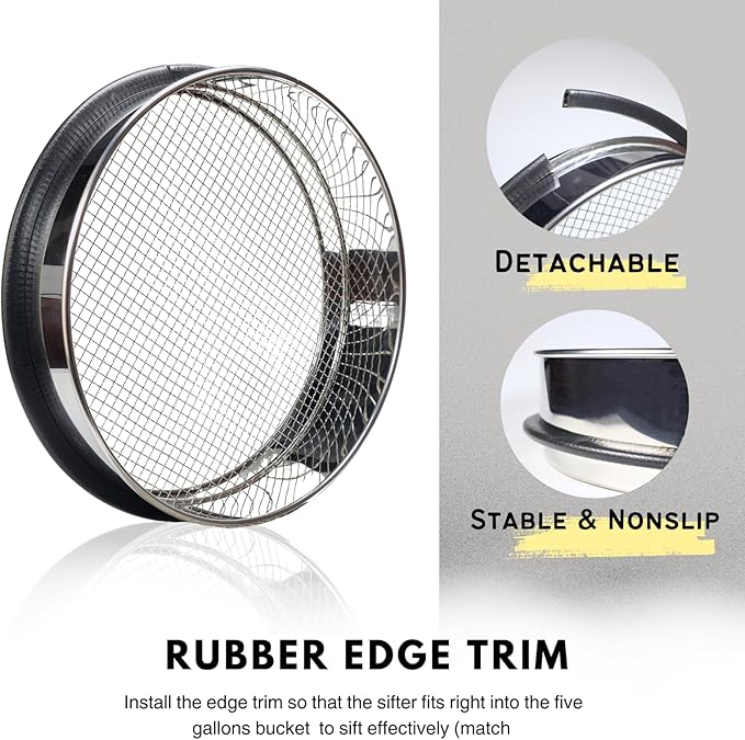 Upgraded Thickened Soil Sifter, 1/4'' Stainsteel Steel Rock Dirt Sifter for 5 Gallon Bucket, Soil Sifter Sieve for Gardening