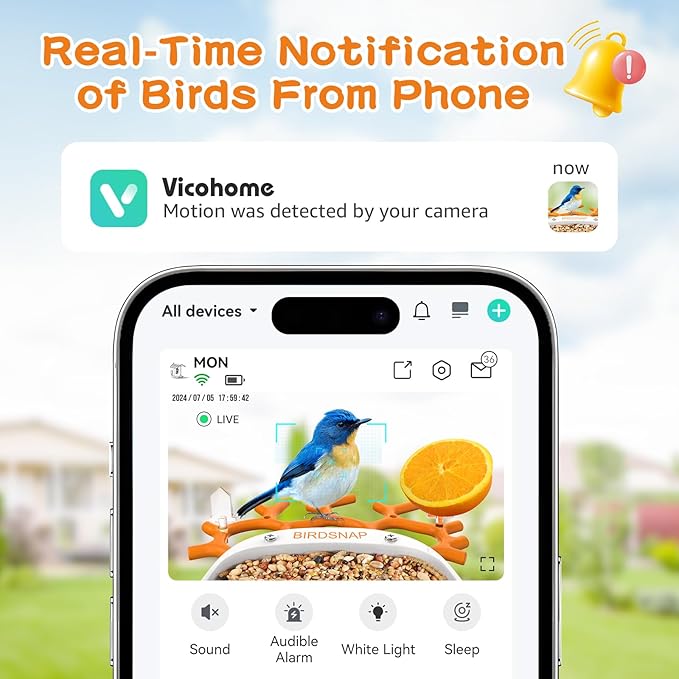 - 【Real-Time Bird Watching on Your Phone】With the bird feeder camera, you can watch birds in real-time from anywhere. Our advanced 150° wide-angle camera auto-captures birds and sends instant notifications to you. Capture stunning close-up shots with 2K HD resolution and color night vision, ensuring you never miss a moment of your feathered visitors