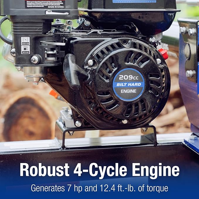 - 20-Ton Splitting Force - This gas log splitter delivers a powerful 20 tons of splitting capacity with its 7 HP 209 cc single-cylinder OHV engine, enabling you to handle logs quickly and efficiently. The engine produces 12.4 ft.-lb. of torque.