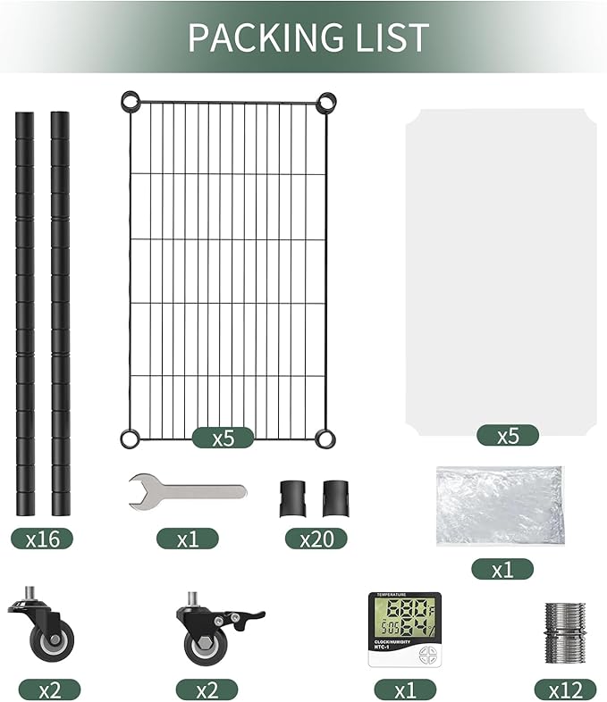 - 5-Tier Construction: The indoor greenhouse features 5 adjustable-height layers, with overall dimensions of 15.7'' L x 11.8'' W x 62.3'' H and high bearing capability.Great size to work for a 10" X 15" seed tray. Perfect for seed starting and for displaying