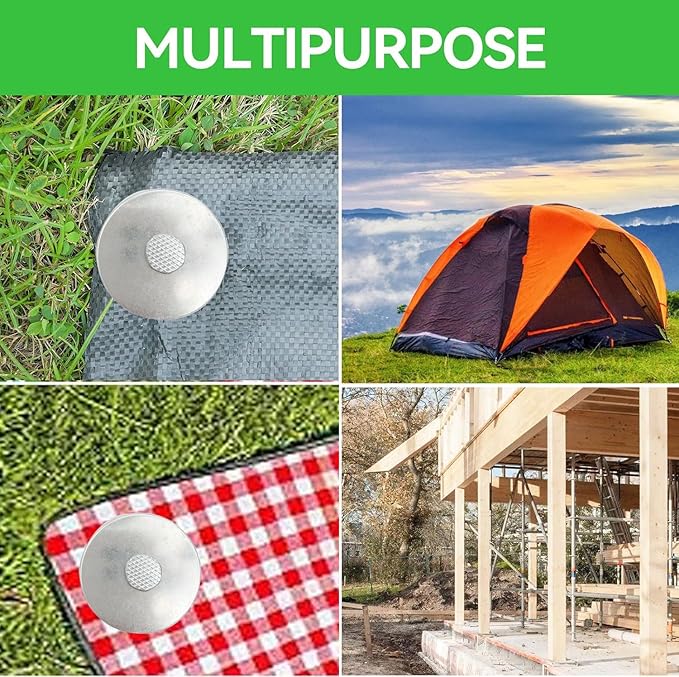 - VERSATILE Wide range : Garden stakes with washers can be used to hold weed barriers, landscape fabric, garden fencing, artificial turf, landscape edging, patio rugs, tents, traps, antifreeze cloth and more. Rv Camping Accessories for Outside,Camper Must Haves