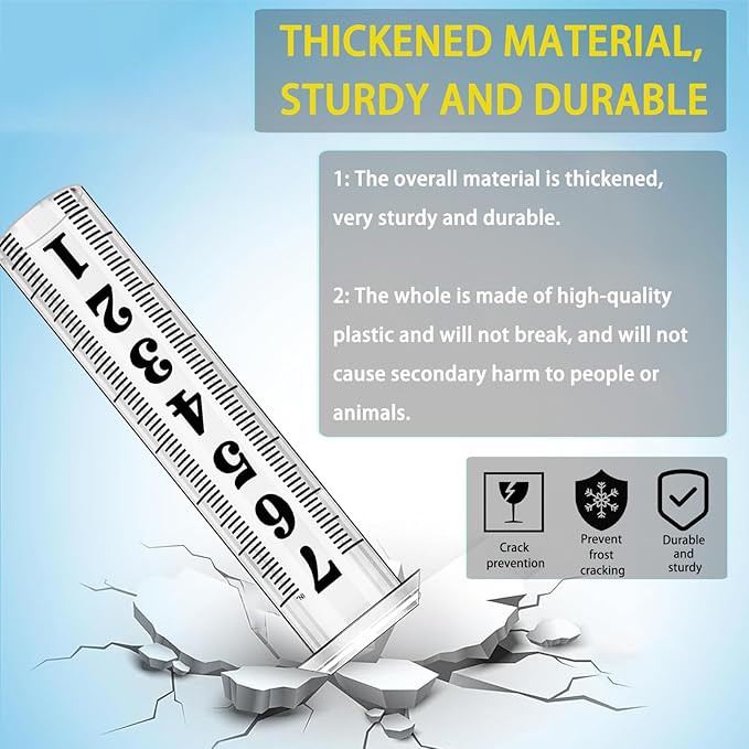 - High Quality Rain Gauge Tube -- The rain gauge replacement tube is made of high-quality, thickened, and durable plastic, which is clear and textured. Not easy to turn yellow or freeze crack even though long exposure outdoors.