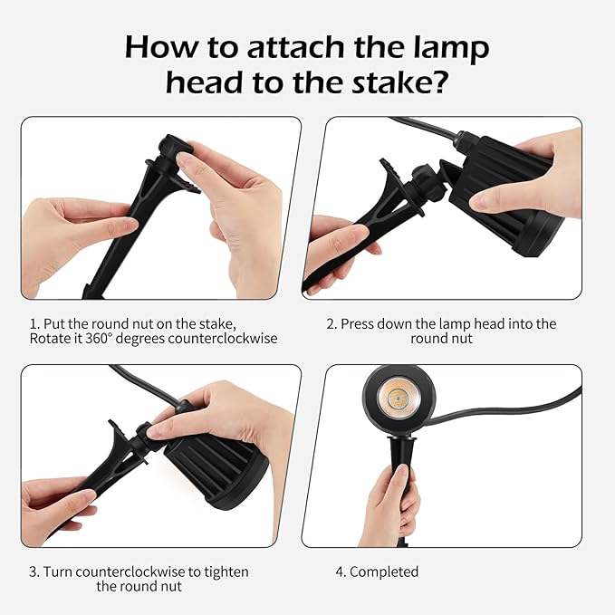 - 【Effortless Installation with 6ft Cord】: These 120V plug-in landscape spotlights come with a US standard 3-prong plug and 6ft cord for easy setup. Simply plug in and go! Detailed instructions enable tool-free assembly and lens replacement, making it easy to get started and customize your outdoor lighting.