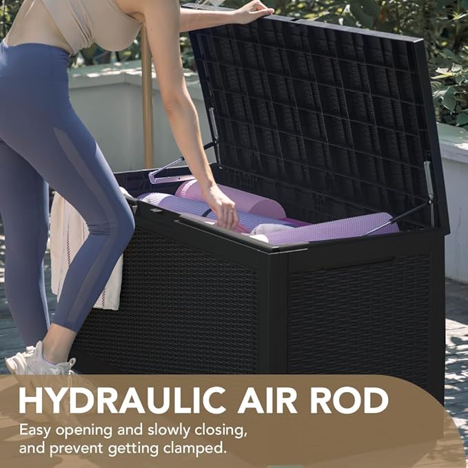 - [Safety Design]: Equipped with two air bars, this storage box makes opening and closing a breeze and closes slowly and smoothly, effectively preventing pinching. Meanwhile, the locking lid keeps your belongings safe and secure for peace of mind.