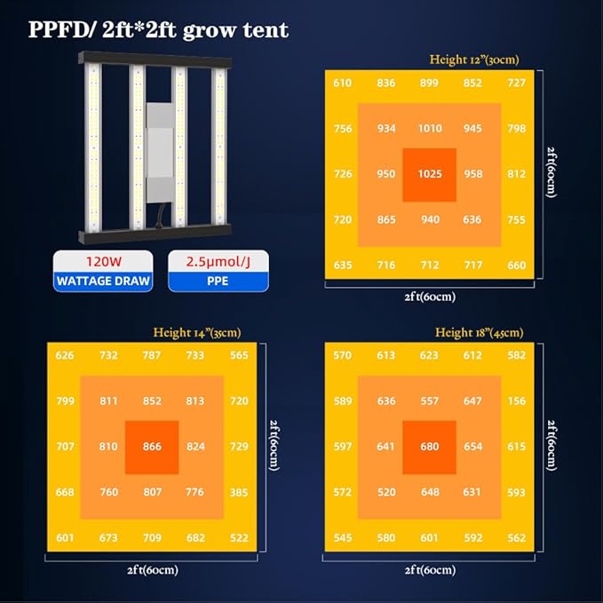 - 【SAFER & MORE RELIABILITY】No Fan ZERO Noise, large areas of solid aluminum heat sink, special protective covers for cables, waterproof LED board, 50% longer lifespan compare with other brand plant grow lights. Allowing you to grow with confidence. Comes with an extra set of hangers for easy hanging; IP65 waterproof level can tackle the typical moisture in the tent.