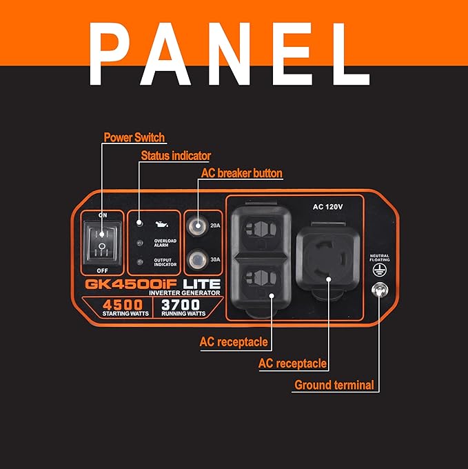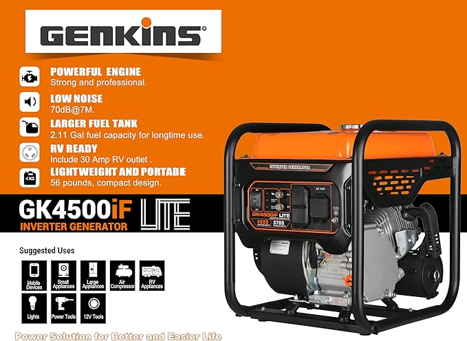 - ⚡ 4500 Peak Watts or 3700 Rated watts | Powered by Genkin's 223CC Powered by Genkins Commercial class 223 cc 4-stroke OHV engine