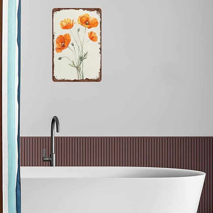 Metal Signs Orange Flowers Vintage Metal Tin Sign for Home Office Kitchen Bar Cafe Garden Wall Decor 12x8 Inch