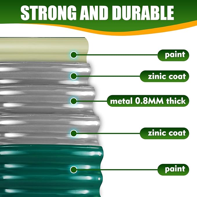 - Rust Resistance: The garden bed is made from corrugated galvanized steel with anti-corrosion paint for rust resistance, ensuring longevity