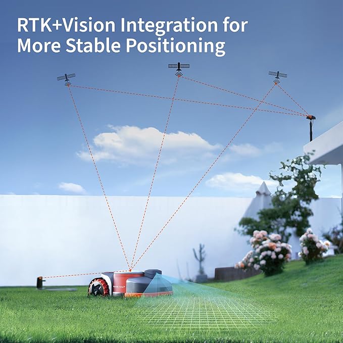 - RTK+Vision Integration for More Stable Positioning: Navimow robot lawn mower integrates RTK positioning and advanced vision technology, greatly improving positioning stability. In places with weak signals or light tree coverage, Navimow can rely on its visual recognition to continue mowing without going out of boundaries