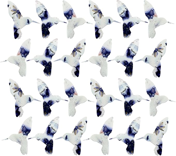 - 24pcs Hummingbird Seed Paper: Includes 24 blank seed papers. Each design is 2.5" x 2.5", ideal for pots, gardens, or outdoor spaces.