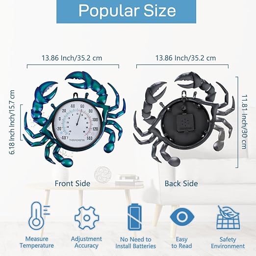 - Ocean Theme Outdoor Thermometer: The perfect blend of crab elements and outdoor thermometer design brings retro style from the ocean theme to the single-function thermometer, decorating the room and attracting people's eyes