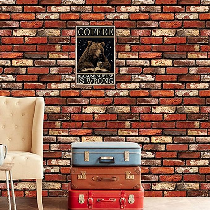Metal Signs Coffee Because Murder Is Wrong Bear Vintage Tin Sign for Home Office Kitchen Bar Cafe Garden Wall Decor 12x8 Inch