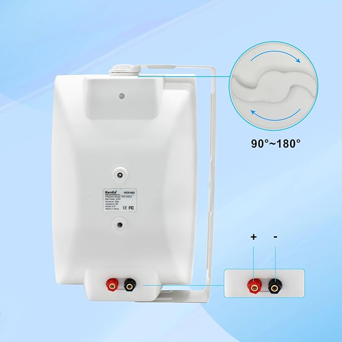 - 2-Way Full Range Stereo Speakers: Herdio’s 6.5 inch outdoor speakers full-range audio with deep bass, a clearer midrange and the crisp highs. The outdoor speakers’ design allows it to project sound evenly across your outdoor space, providing an immersive listening experience