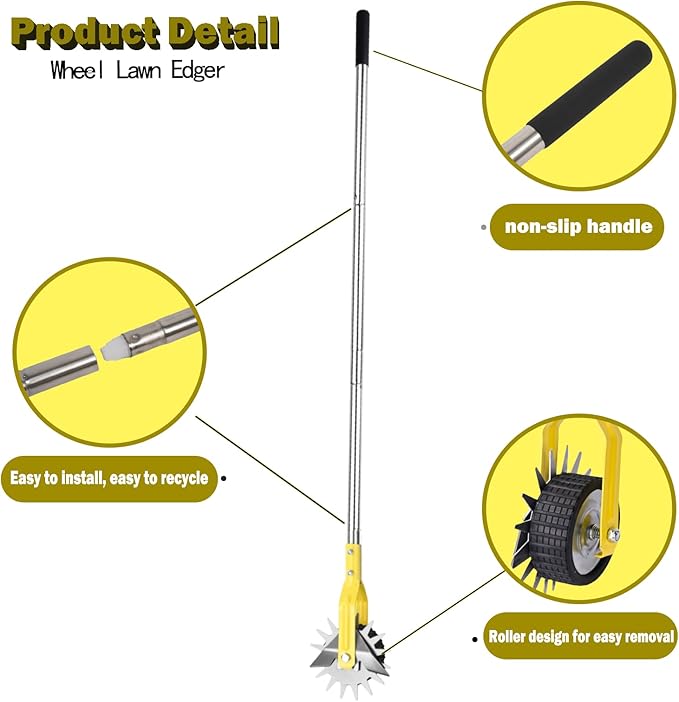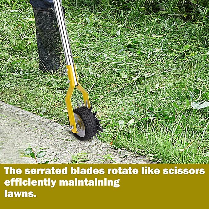 - 【Efficient Trimming】: Our sawtooth wheel of the trimmer edger lawn tool rotates when pushed forward, gathering the grass you need to trim together and cutting it off easily. Combined with the adjustable handle length and wheeled design, this lawn edger tool can not only easily trim the edge of the lawn, but also move easily, making work more efficient