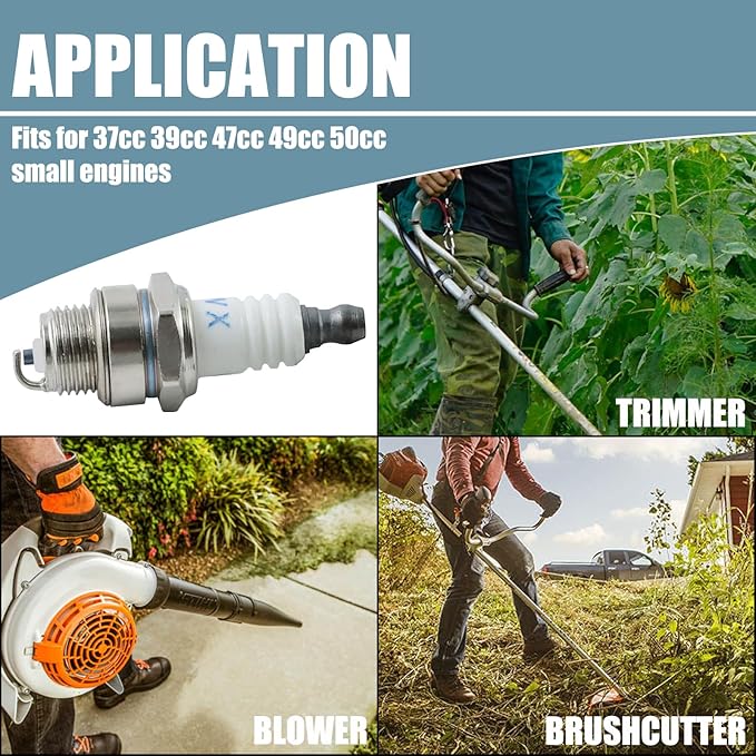 - Sparkplugs suitable for most 36cc-52cc 2-strock small engines. Widely used in Husqvarna, Stihl, Echo chainsaws, lawn mowers, trimmers, blowers, brushcutter, etc.