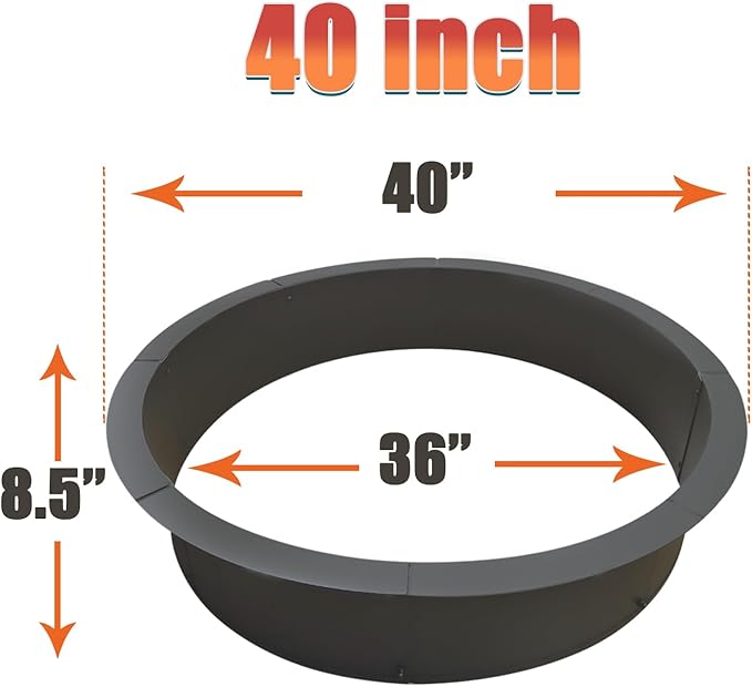SoulMate Outdoor 40-Inch Outer/36-Inch Inner Fire Pit Ring,Duty Solid Metal Steel Round Firepit Rim Insert for DIY Fire Pits, Outdoor Above or In-Ground, Camping Garden Patio Backyard.