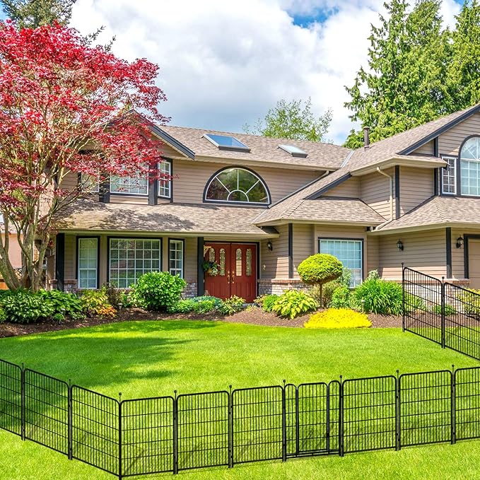 - Wide Application: This Metal Fence Is Suitable as A Garden, Lawns, Vegetable Garden Borders, and Path Edge Fences. It Can also be Used Indoors as Your Pet's Fence , and The Bottom of The Pole Is Fitted With An Anti-friction Sleeve That Won't Scratch Your Floors. Can also be Used as An Outdoor Pet Fence When You're Traveling or Camping