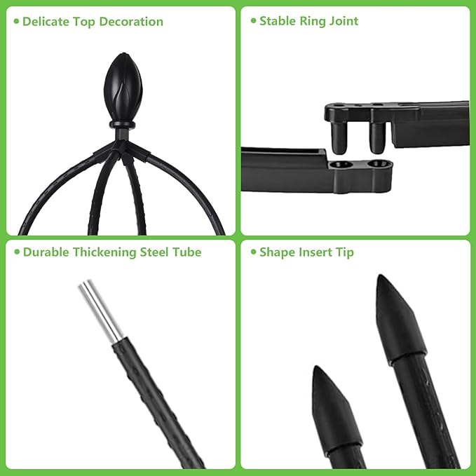 - Durable Materials: Each plant stake is made of steel pipe, coated with plastic to prevent rusting of the internal steel pipe. And the support rings are made of durable plastic. So these garden trellis is sturdy and friendly for plants.
