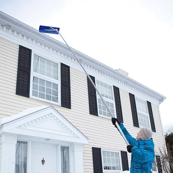 - Snow shovel roof rake can be used to remove snow, leaves small branches, pine straw and other debris from the roof of your house, shed, or garage! No need to climb the roof, just standing on the ground. Suitable for home, square, park, plot, courtyard, etc