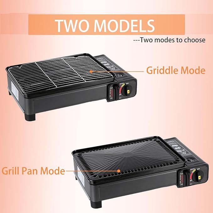 - ADJUSTABLE TEMPERATURE: Portable butane stoves come with adjustable heat button settings that allow you to precisely control the cooking temperature during use. Suitable for you to perform a variety of cooking methods, from simmering and sautéing to high-temperature grilling.