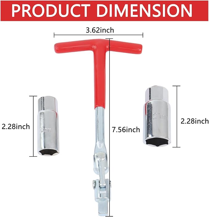 - Wide Application:The spark plug handle socket wrench is suitable for most motorcycles, lawn mowers, and small motor vehicles, etc. It is suitable for disassembling and installing 16 mm and 21 mm spark plugs