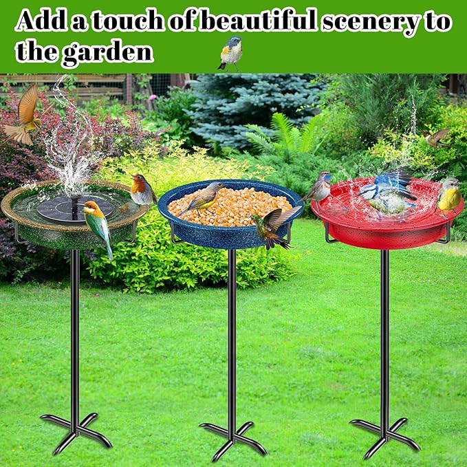 - 【Sturdy Base】Heavy duty steel stake with 4 solid prongs makes this bird bath stay in the soil of your garden upright and firmly. This birdbath is uneasy to bend, break or fracture, keeping your yard or garden full of songbirds all year long.