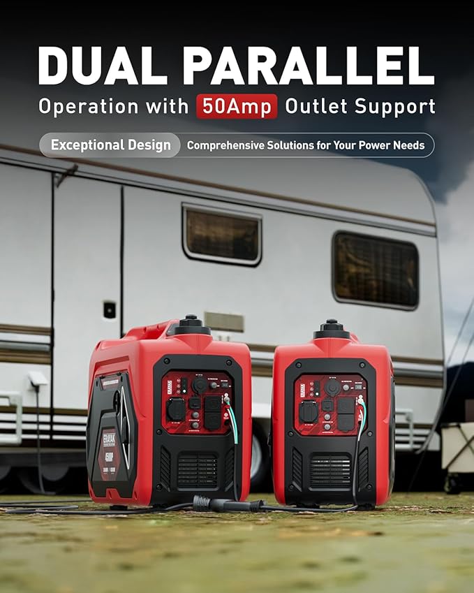 - 50A Parallel Generator: Connect two 4500W power generators to double your power output (parallel kit sold separately). When two 4500P units are connected in parallel, they deliver a rated power of 7,000W and a peak power of 9,000W, while supporting a 50A output.