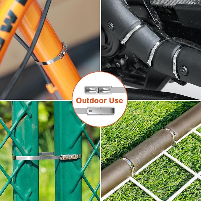 - 【UNIVERSAL APPLICATION】Multi functional metal cable ties are suitable for outdoor chain link fence parts, cables, gardens, farms, pipelines, roofs, dog houses, exhaust hangers and other scenes, and can firmly fix items in each scene.