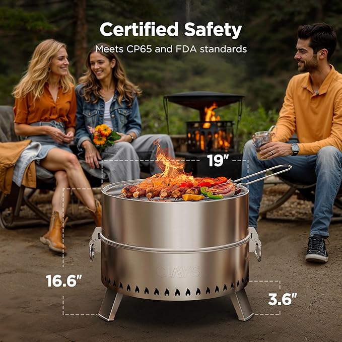 - Food-Grade Quality: The included 304 stainless steel grill rack meets food-grade standards for delicious meals outdoors with friends and family. Enjoy peace of mind with our smokeless fire pit, ideal for grilling on your patio, deck, garden, or in any backyard.