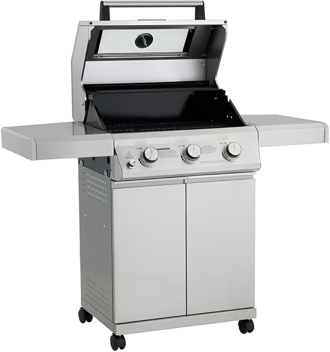 Monument Grills Larger 3-Burner Propane Gas Grills Barbeque Stainless Steel Heavy-Duty Cabinet Style with Smoker Box (2 Items)