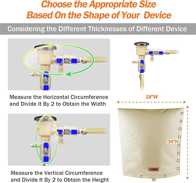 - 【Measure Before Purchase】The size of this sprinkler backflow cover for winter is 18"W x 34"H. Considering the Different Thicknesses of Different Equipment, measure the Horizontal Circumference and Divide It By 2 to Obtain the Width, and measure the Vertical Circumference and Divide It By 2 to Obtain the Height. Choose the appropriate size based on your device.