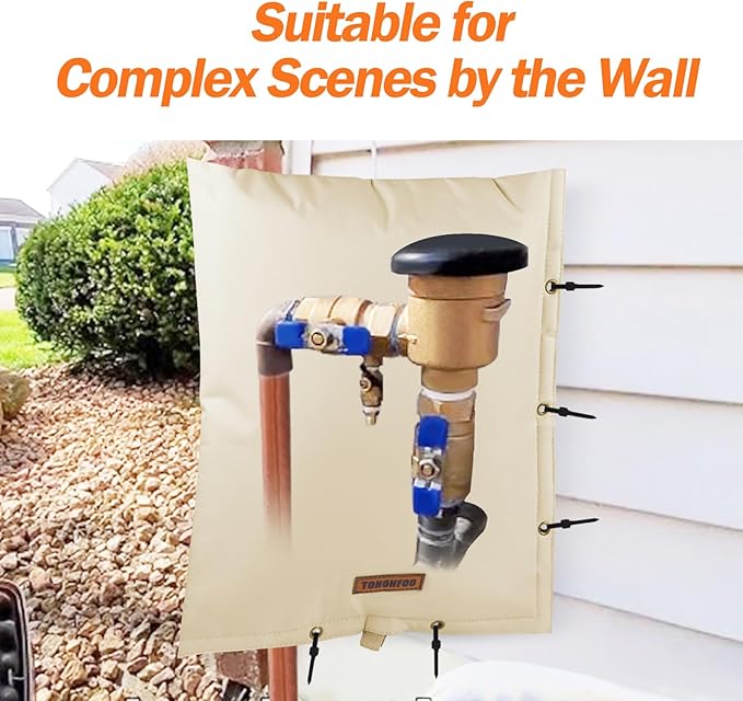- 【Easy To Install and Stay Sturdy】Put the cover on your backflow preventer and pipes then close it with the Velcro Strips. We also prepared some extra nylon ties to fix it and keep your insulated pouch in place. The grommets also can be locked by Chain to prevent being taken away by theft, increasing security.