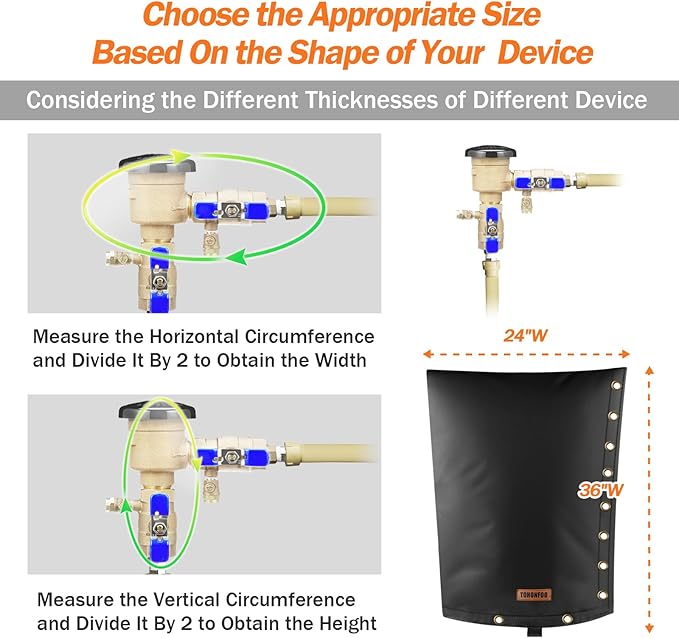 - 【Measure Before Purchase】The size of this sprinkler backflow cover for winter is 24"W x 36"H. Considering the Different Thicknesses of Different Equipment, measure the Horizontal Circumference and Divide It By 2 to Obtain the Width, and measure the Vertical Circumference and Divide It By 2 to Obtain the Height. Choose the appropriate size based on your device.