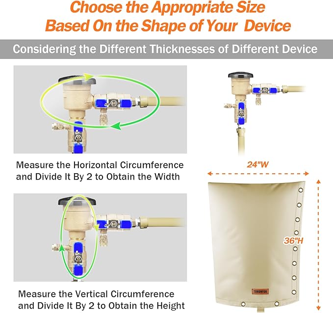 - 【Measure Before Purchase】The size of this sprinkler backflow cover for winter is 24"W x 36"H. Considering the Different Thicknesses of Different Equipment, measure the Horizontal Circumference and Divide It By 2 to Obtain the Width, and measure the Vertical Circumference and Divide It By 2 to Obtain the Height. Choose the appropriate size based on your device.