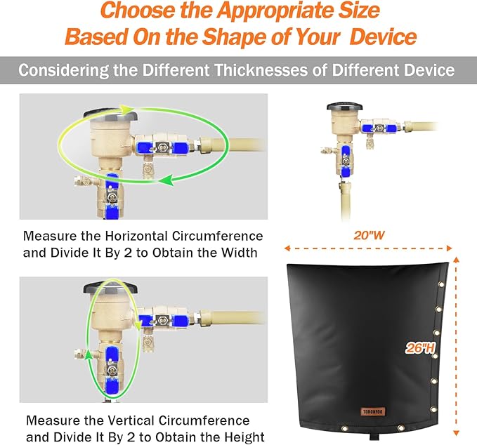 - 【Measure Before Purchase】The size of this sprinkler backflow cover for winter is 20"W x 26"H. Considering the Different Thicknesses of Different Equipment, measure the Horizontal Circumference and Divide It By 2 to Obtain the Width, and measure the Vertical Circumference and Divide It By 2 to Obtain the Height. Choose the appropriate size based on your device.