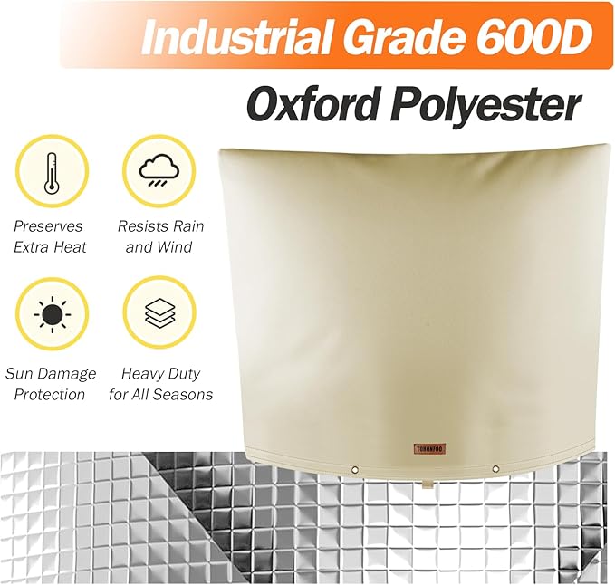 - 【5 Layers Design Insulation & Waterproof】Made of 1 Layer of Waterproof Heavy Duty 600D Oxford Fabric, 2 Layers of Cotton Insulation, and 2 Layers PE Sliver Coated Cloth that make it guard against severe weather. Our sprinkler cover for outside is engineered to endure freezing temperatures as low as 5 degrees. We recommend draining the system to winterize or prevent unknown cold weather.