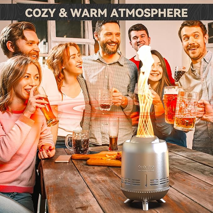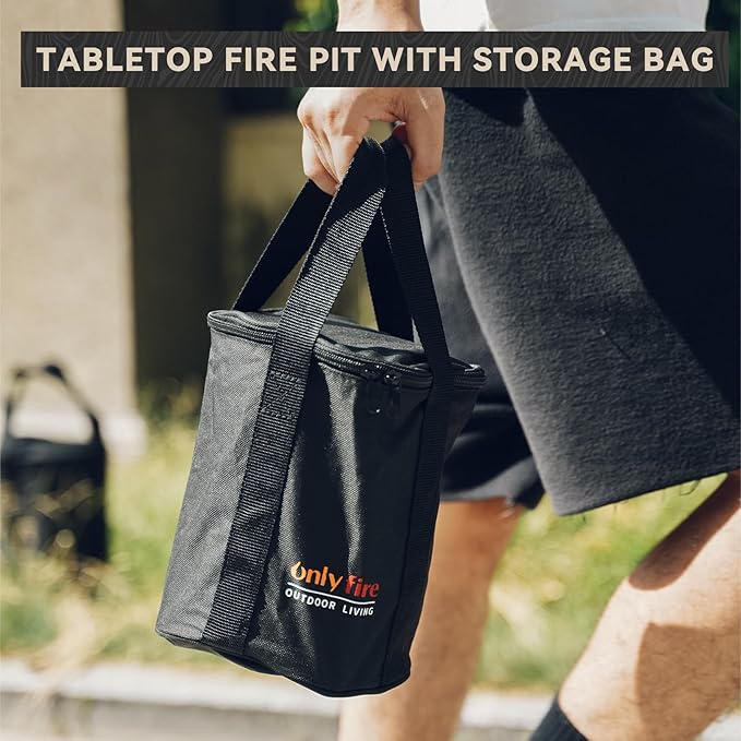ONLYFIRE OUTDOOR LIVING Tabletop Fire Pit Burning Woods/Pellets, Portable Small Fireplace with Storage Bag for Camping Tailgating RV Patio Backyard, Smokeless Camping Stove 9.5", FP055 Silver