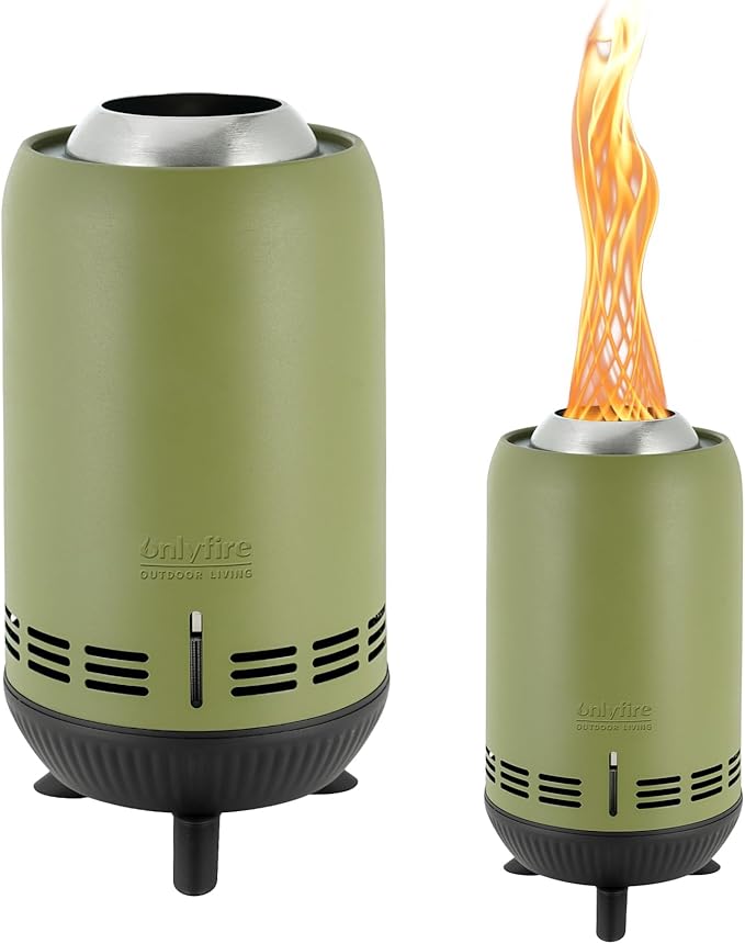 ONLYFIRE OUTDOOR LIVING 12" Tabletop Fireplace with Carrying Bag, Portable Fire Pit for Camping RV Tailgating Patio Backyard Bonfire, Smokeless Camp Stove, Stainless Steel, #FP054 Green