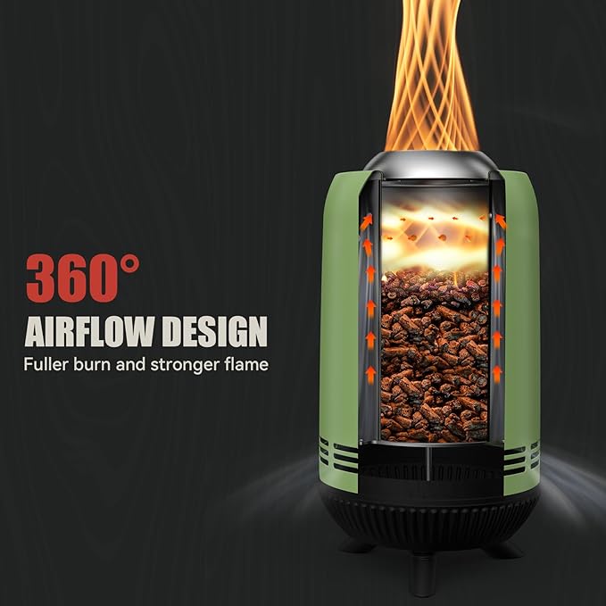 - 【SLEEK DESIGN AND DUAL-FUEL FLEXIBILITY FOR ANY OUTDOOR ADVENTURE】 Fueled by economic and environmental wood logs or wood pellets, it creates rustic, charm and efficient flame—ideal for camping, backyard BBQs, beach bonfires, RV trips, or cozy nights on the patio. No gas or electricity required! From the beginning of lighting it might have little smoke, but the smoke will disappear when it starts fully burning.