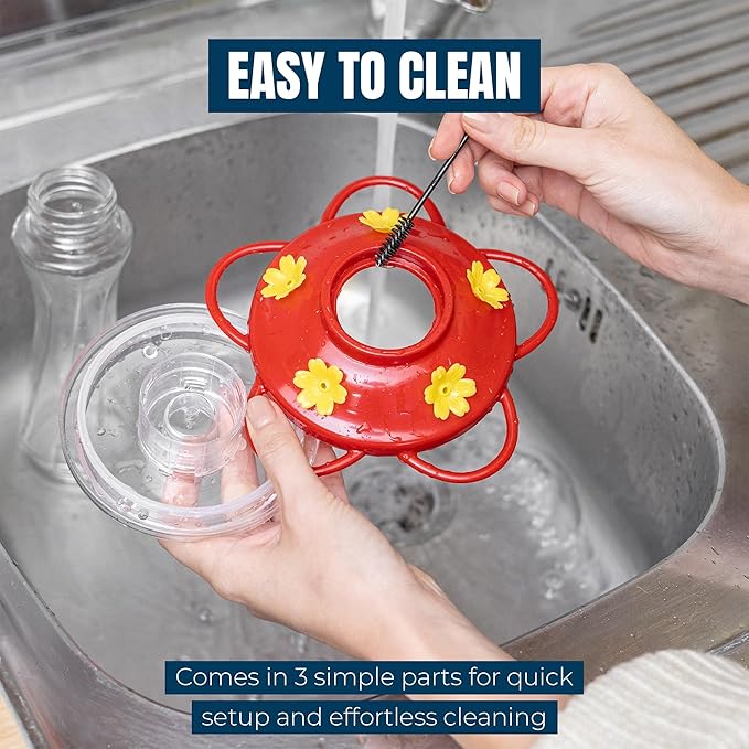 - MULTI-FUNCTIONAL AND EASY TO USE: This hummingbird feeder with perch allows birds to rest comfortably while feeding, making observation more enjoyable. Designed as a bee proof hummingbird feeder, it ensures hummingbirds access nectar while keeping bees away. It’s also an easy to clean hummingbird feeder, ideal for regular use.