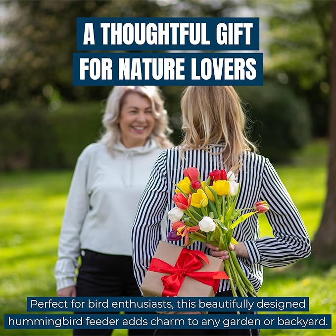 - ATTRACTIVE RED DESIGN TO BRIGHTEN YOUR GARDEN: This red hummingbird feeder features a vibrant color and sleek design to attract hummingbirds while enhancing your outdoor space. A pretty hummingbird feeder that combines functionality and decoration, making it a thoughtful gift for nature lovers, bird watchers, or garden enthusiasts.