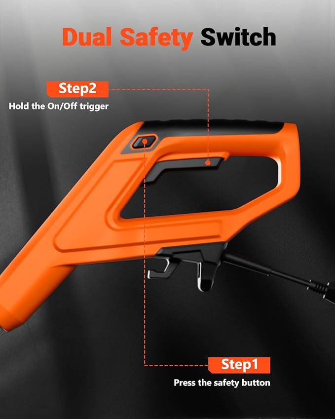 - ERGONOMIC & SAFE - Voltask designs products from the user's perspective. To address back pain issues, this corded snow blower utilize ergonomic design and feature an adjustable handle. Moreover, we use snow-resistant and waterproof materials, and our electric snow blower is equipped with a dual safety switch, aimed at ensuring a comfortable and safe snow removal experience for our users.