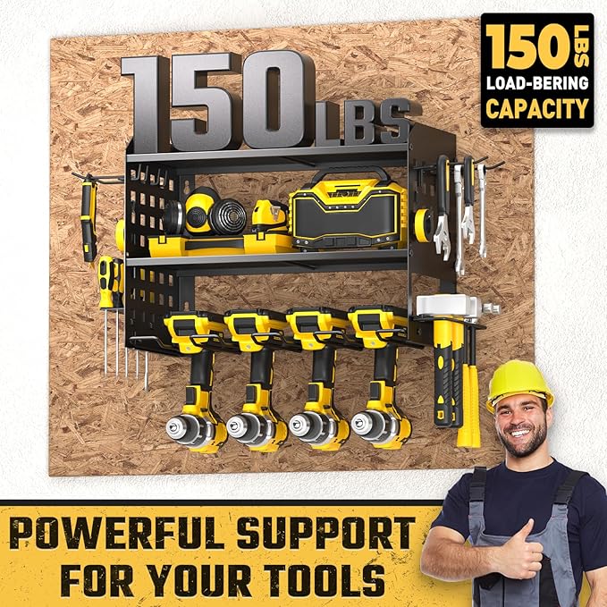 - 【3-Layer Efficient Storage】Power tool organizer is made of dense steel structure, welded without dead corners with 16.73" length, 7.9" width, and 10.5" height. Drill organizer are dedicated to optimizing space, transforming wasted wall space into efficient tool storage and display areas.