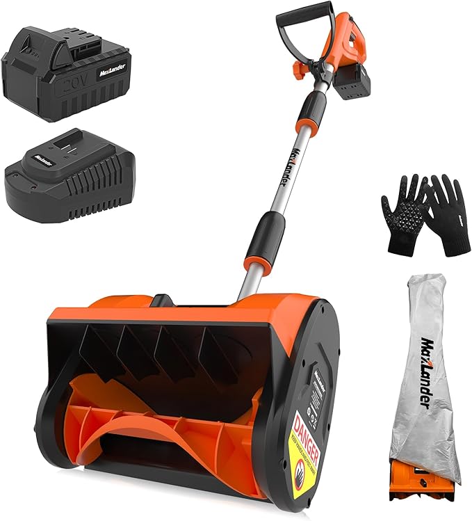 - 【INCLUDES】MAXLANDER 20V 12-inch electric cordless snow shovel,4.0Ah battery pack, quick charger,snow shovel cover,Gloves.If you have any questions,can directly contact us.We will message back in 24 hours.