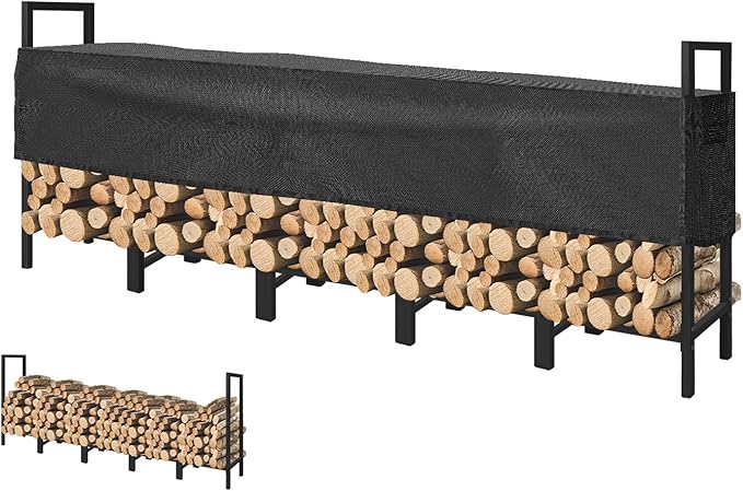 - 🔥OUTDOOR/INDOOR WOOD RACK: Firewood rack with cover for backyard fire pits, wood burning stoves, haystacks, woodpiles and firewood for outdoor camping logs. Can be used on porches, gardens, decks, under eaves, patios, yards and mor. Suitable for any climate, hot, cold, warm or dry.