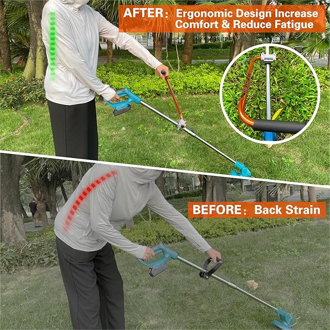 - Application: Whether for maintaining large lawns, commercial landscaping, or simple home garden trimming, the weed trimmer handle extension is a need and it makes our job quick and enjoyable. It's designed to provide a more comfortable and efficient trimming experience for users of all heights and is particularly beneficial for those with back issues. If you have an unsatisfied experience, please contact us, we will do our best to help you have a excellent shopping experience.