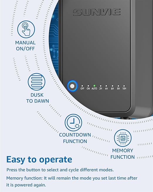 - COUNTDOWN TIMER & MEMORY FUNCTION - Just press the button to select and cycle different countdown modes easily. When set 2/4/6/8/10 hours countdown it will automatically turn on at dusk and turn off 2/4/6/8/10 hours later. Memory function, the transformer will still maintain the last set mode, even if there is a power outage.