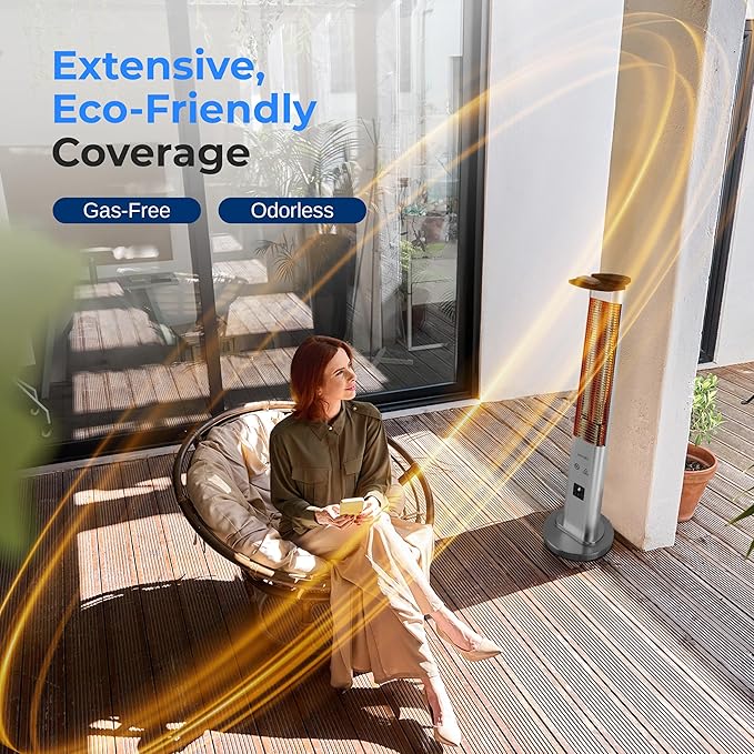 - INSTANT WARMTH: Relax on cool days with our patio heaters for outdoor use, delivering sun-like, odorless heat in seconds—no gas or propane needed. Two heat levels and a remote control ensure immediate, convenient comfort.